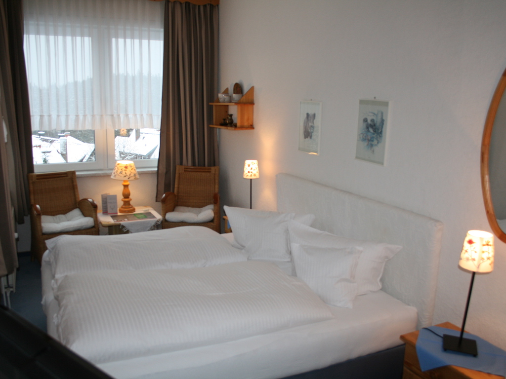 Unser 18 m² großes Doppelzimmer mit einem großen Doppelbett.