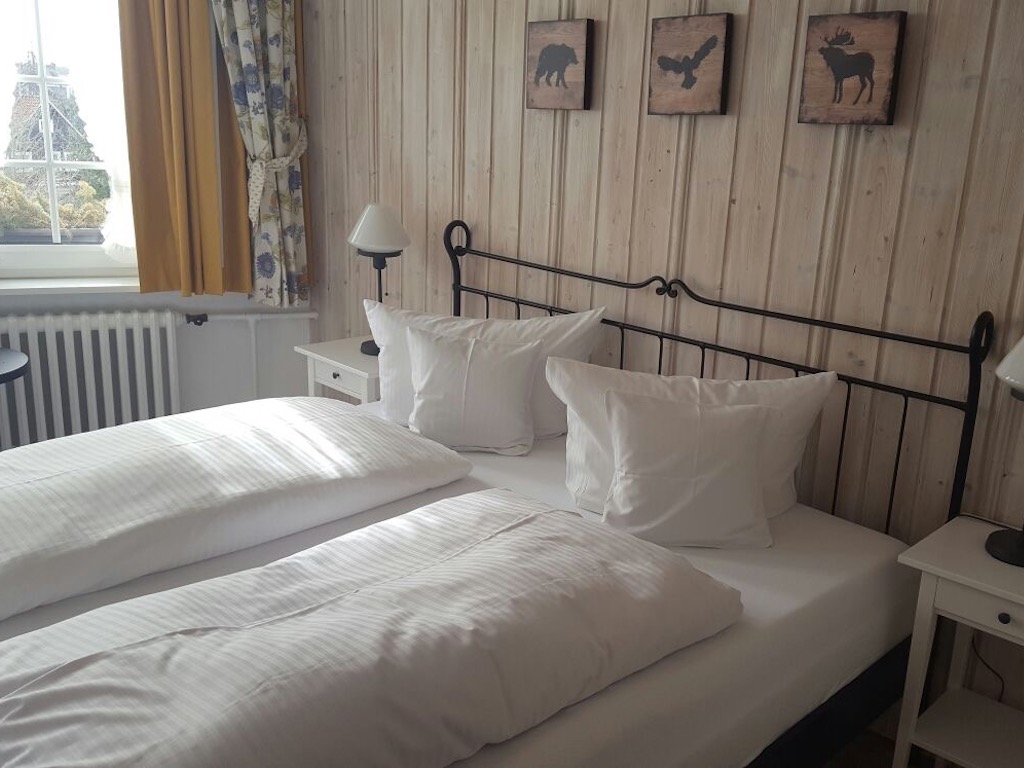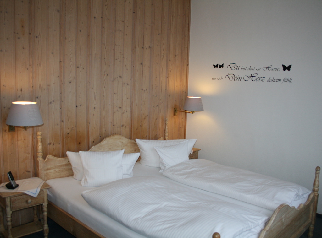 Unser 18 m² großes Doppelzimmer im Landhausstil mit einem großen Doppelbett.